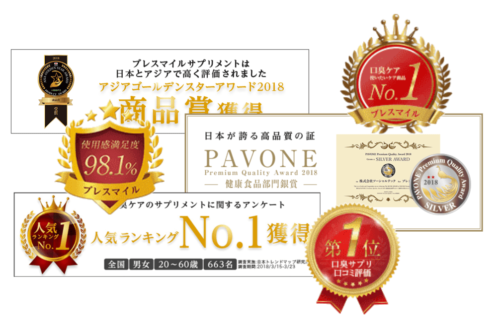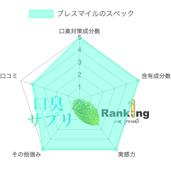 - 見事1位にランキングしたのが、口臭対策成分数をはじめ、全ての項目の評価でトップを獲得した『ブレスマイル』です。