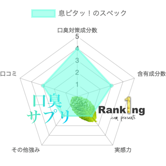 - 3位は、口臭対策成分数がトップクラスで、植物エキスを主成分としている『臭ピタッ!』です。